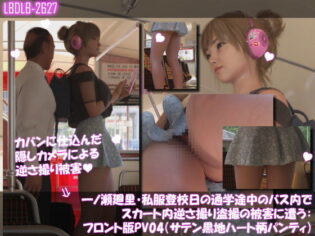 Libido-Labo 【TRY漫画】一ノ瀬廻里・私服登校日の通学途中のバス内でスカート内逆さ撮り盗撮の被害に遭う:フロント版PV04(サテン黒地ハート柄パンティ)