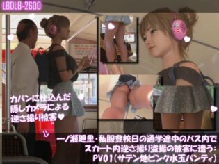 Libido-Labo 【TRY漫画】一ノ瀬廻里・私服登校日の通学途中のバス内でスカート内逆さ撮り盗撮の被害に遭う:PV01(サテン地ピンク水玉パンティ)